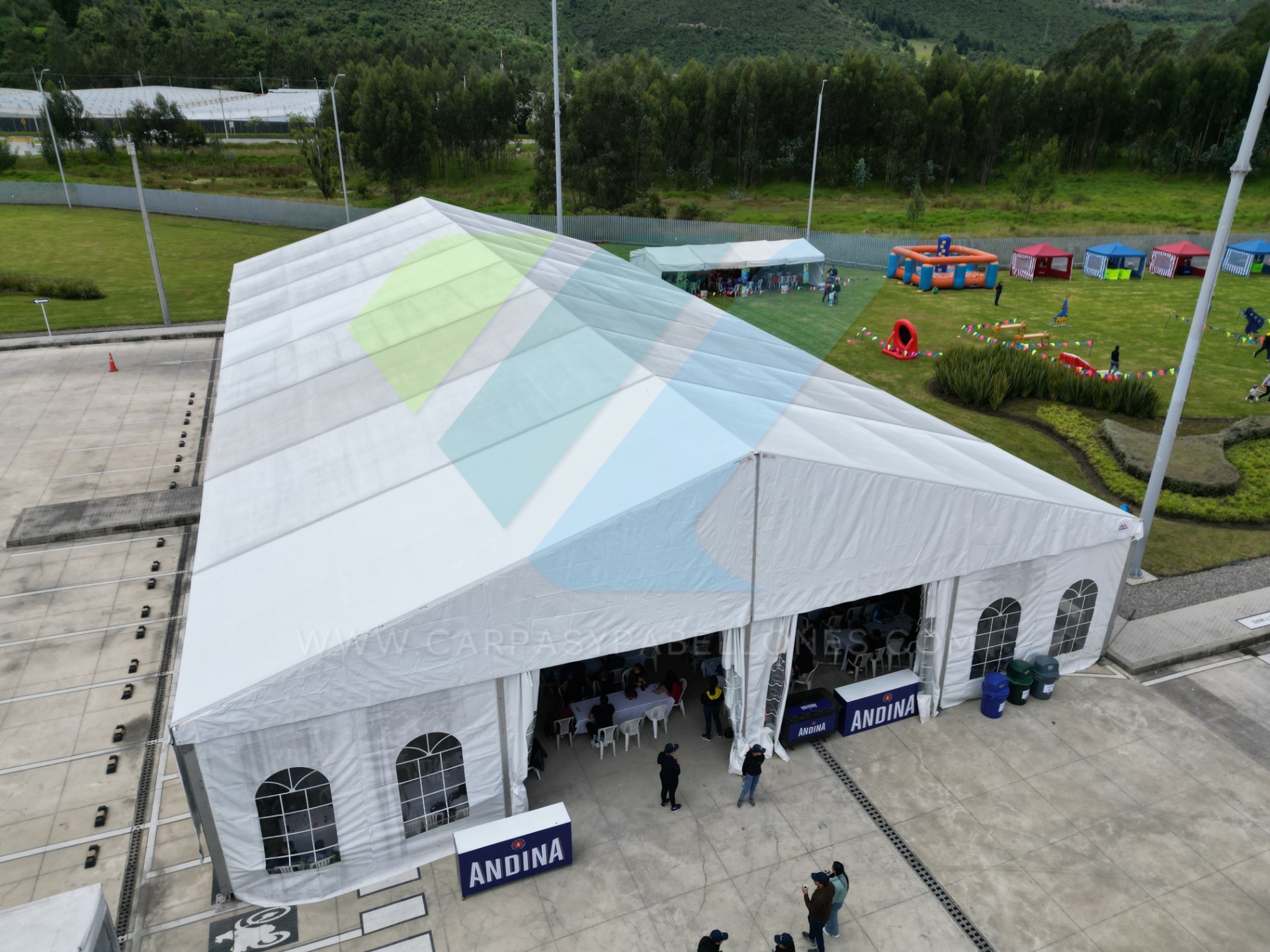 Disponemos de carpas importadas tipo pabellón en aluminio, con acabados de alta calidad, resistentes a la intemperie y con opciones de cerramientos laterales, pisos y climatización. Nuestro equipo técnico se encarga del diseño, transporte, montaje y desmontaje, cumpliendo con los tiempos y normas de seguridad exigidas para tu evento.